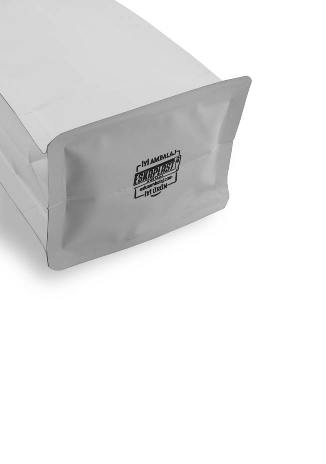 Mat Beyaz Metalize Kilitli Flat Bottom Torba’yı oksijen, nem ve ışık bariyeri sağlayarak ürününüzün tazeliğini koruyacak şekilde ortası katmanı metalize olmak üzere 3 kat laminasyonlu malzemeden üretmekteyiz. Ön yüzünde ‘’Pocket zipper’’ tipi tekrar kapatılabilir kilit sistemi bulunmaktadır. Mat beyaz bir renge, dış yüzeyinde kullanılan mat malzeme sayesinde kadifemsi dokuya ve kusursuz forma sahiptir. Yenilikçi flat bottom formu ile müşterilerinizi ürününüze çeker.